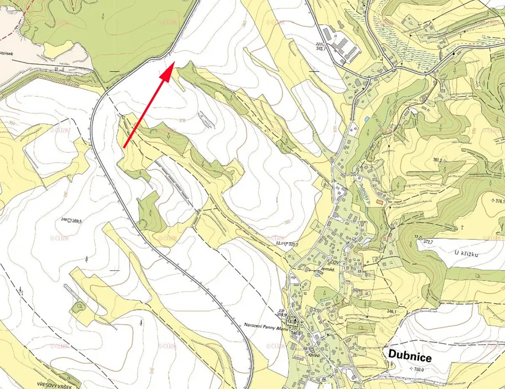 Prodáme pozemek (orná půda) s částečným porostem stromů (možno vytěžit), přímo přiléhající k místní asfaltové silnici a k obecní polní cestě v k.ú. Dubnice pod Ralskem, parcela č. 1612/42.