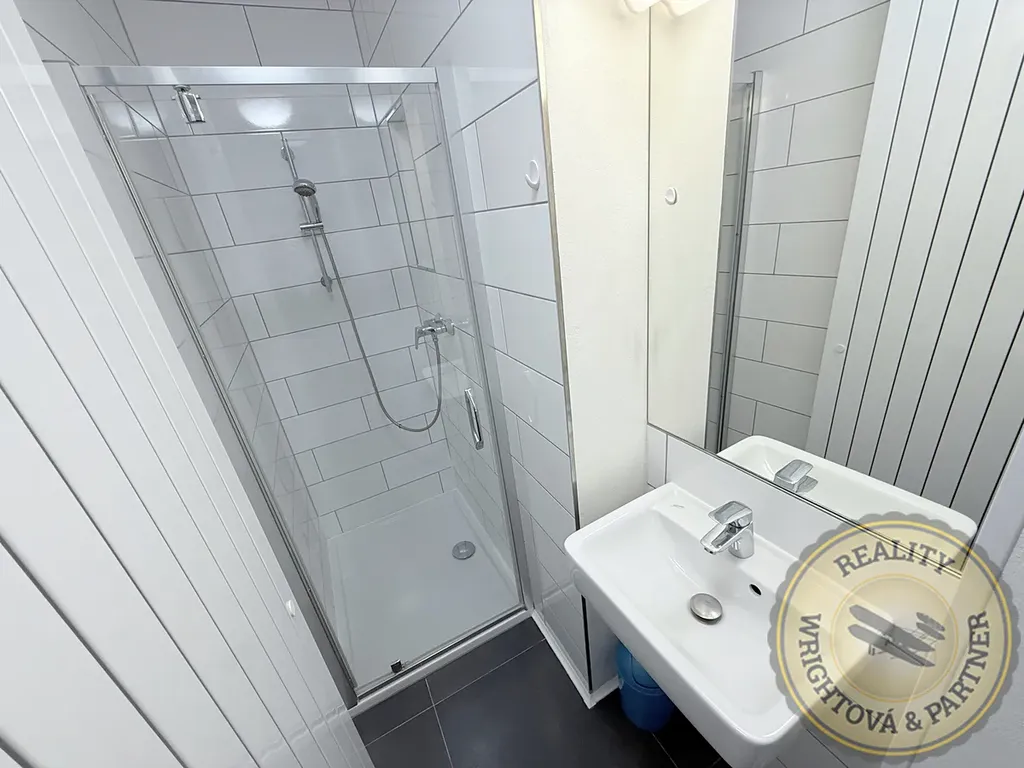 Byt se nachází v třípodlažním domě a díky mimořádné výšce stropu je řešen jako mezonet s praktickým vestavěným patrem. Horní část slouží jako ložnice o velikosti cca 9 m², kde je k dispozici také skříň a střešní okno, které prostor příjemně prosvětluje. Toto řešení přirozeně odděluje klidovou část od obytného prostoru a dodává bytu vzdušnost i osobitý charakter.