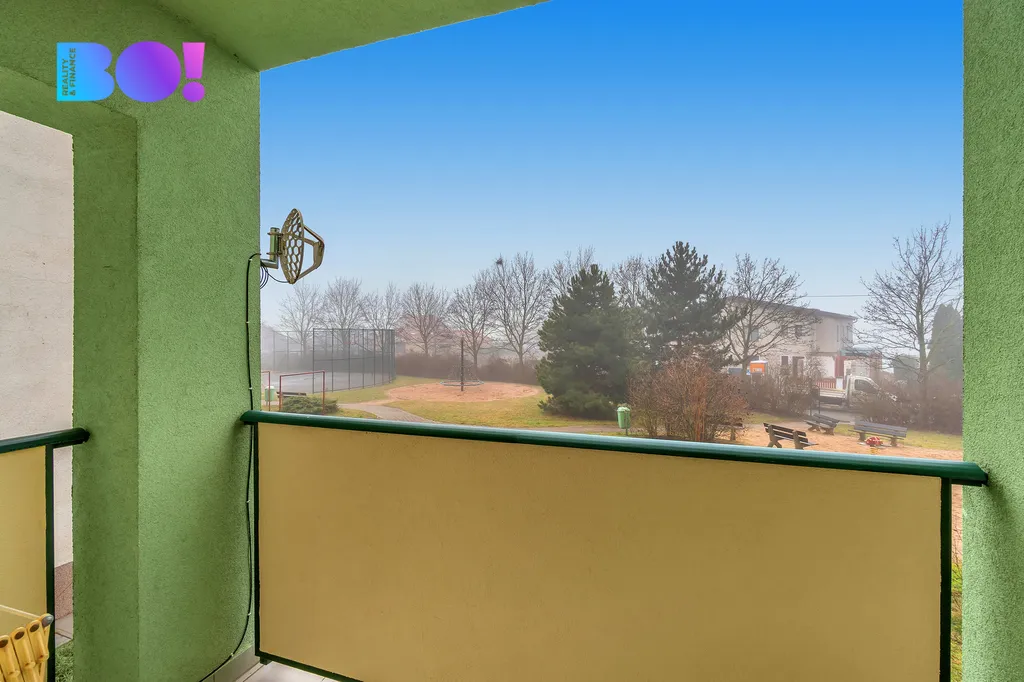 Bytová jednotka je umístěna v přízemí bytového domu s výtahem. Dispozice: vstupní chodba, obývací pokoj se vstupem na balkon, ložnice, prostorná kuchyň, koupelna, WC