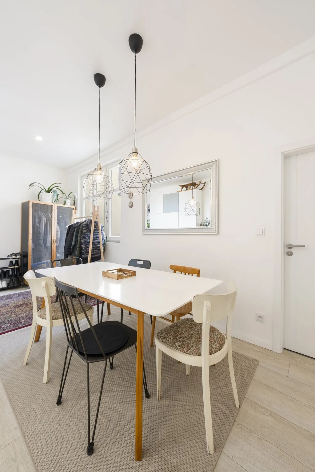 Byt prošel kompletní a velmi citlivou rekonstrukcí s důrazem na kvalitu provedení i zachování původního charakteru. Dominantou jsou vyšší stropy, které dodávají prostoru vzdušnost a eleganci. Součástí rekonstrukce byly nové rozvody elektřiny, vody i odpadu, topení, nové podlahové krytiny, omítky i okna – zkrátka vše bylo vybudováno zcela od základu.