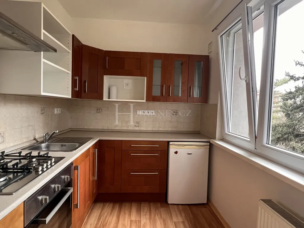 V bytě je samostatná kuchyň, obývací pokoj, koupelna s vanou, toaleta je zvlášť.