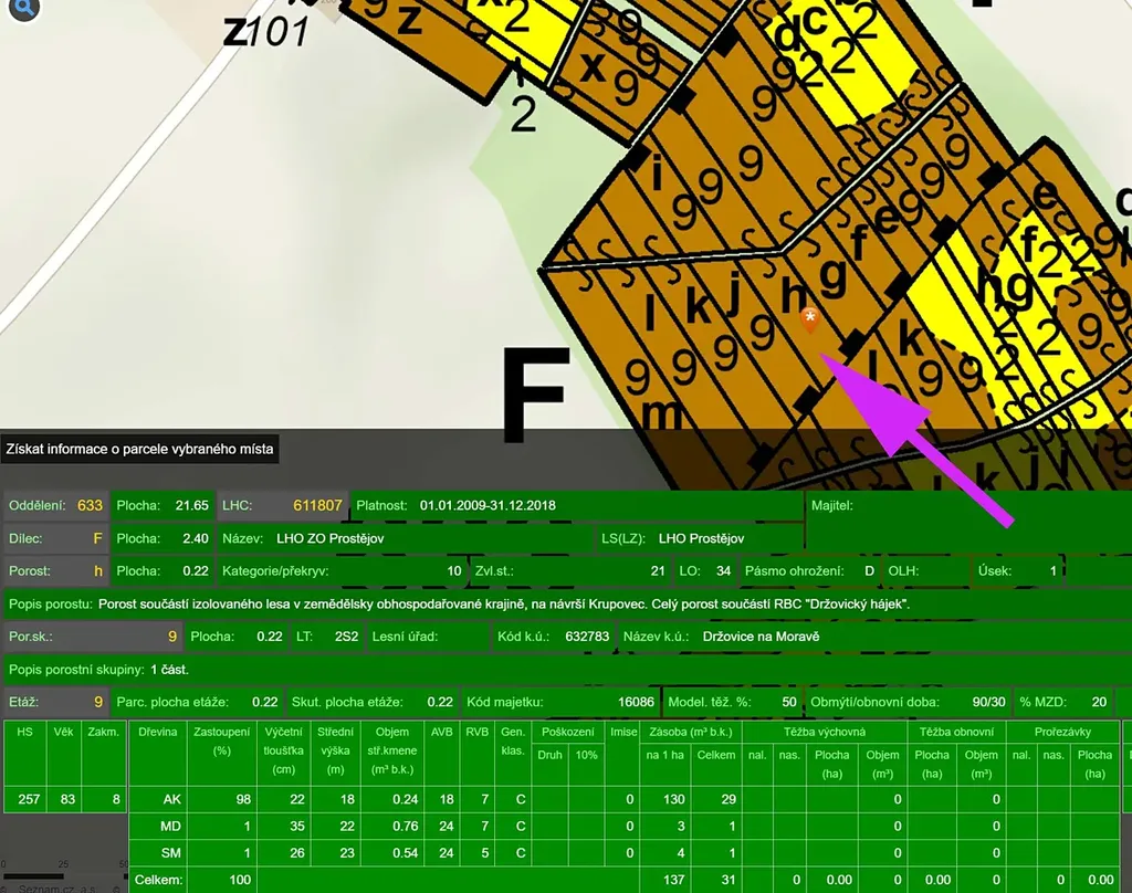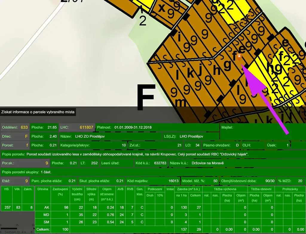 Prodáme pozemek - les blízko obce, dostupný z obecní lesní cesty v k.ú. Držovice na Moravě, parcelní čísla 294/1, 294/2, 297 a 298.