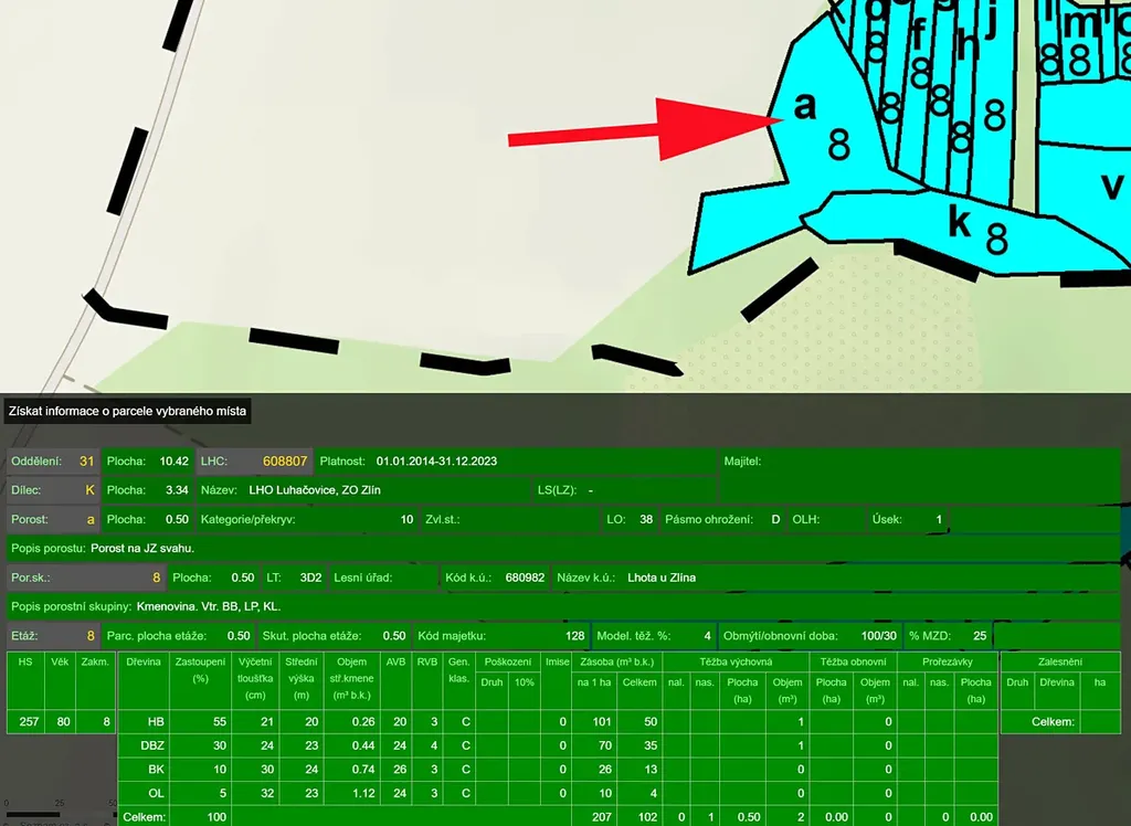 Prodáme pozemek v k.ú.Lhota u Zlína, les 85 let, zásoba 100m3 a louka s porostem stromů, na louce možno těžit. Čísla parcel viz obrázek katastrální mapy. Možno prodat i po jednotlivých parcelách.