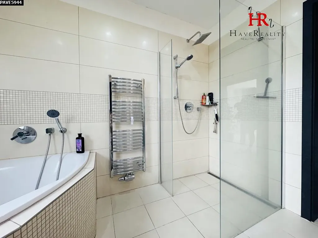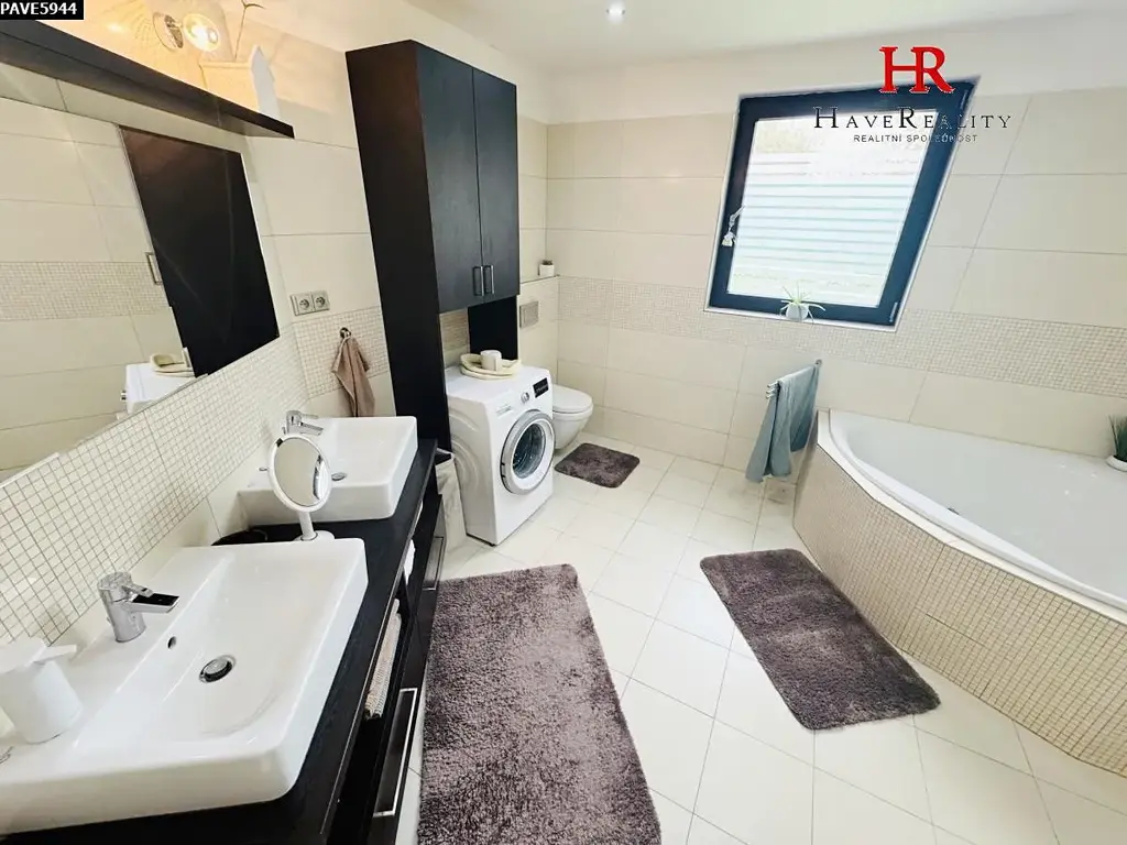 Dovolujeme si Vám nabídnout s okamžitou platností do pronájmu luxusní, plně vybavený rodinný dům 5+KK, obytné plochy cca 200 m2 se zastřešenou terasou cca 15 m2 a přilehlou založenou zahradou cca 824 m2. Dům se nachází v obci Jírovice, vzdálené cca 3,5 km od Benešova. K domu náleží garáž pro 2 automobily. Dům byl kolaudován v roce 2013 a je napojený na vlastní studnu a ČOV s nádrží na užitkovou vodu (25 m3) a napojením na automatickou závlahu zahrady zn. Rain Bird. Bazén na zahradě s filtrací a vlastním tepelným čerpadlem. Stavebním materiálem domu je cihla s integrovanou izolací, okna jsou plastová 3 skla, vybavená elektrickými předokenními roletami a sítěmi proti hmyzu. Dům je připojen na tepelné čerpadlo, které zajišťuje vytápění domu i ohřev TUV. Akumulační zásobník TUV má 190 l. Všechny místnosti mají podlahové teplovodní vytápění, což je velice příjemné a komfortní. Podlaha v domě je keramická dlažba. Dispozičně je dům členěn na přízemí: vstupní chodbu, garáž pro 2 automobily (40 m2), technická místnost a šatna a v patře jsou umístěny: prostorný obývací pokoj s krbem, východem na terasu, kuchyňským koutem vybaveným vestavnými spotřebiči: (myčka, mikrovlnná trouba, pečící trouba, lednice s mrazákem, digestoř s osvětlením a odtahem ven, indukční varná deska, 4 samostatné pokoje, koupelna s vanou a 2 umyvadlem, prostorným sprchovým koutem a WC a samostatná toaleta s umyvadlem. Ve 4 místnostech je k dispozici termostat k regulaci tepelné pohody. Veškeré vybavení domu připravené pro využití nájemcem! Na chodbě je domovní videotelefon. Dům je připojen na zabezpečovací zařízení Jablotron. Internet O2, kabelem. Štítek PENB třída „B“ – velmi úsporná. Požadované měsíční nájemné činí 40.000,- Kč + záloha na elektřinu ve výši 5.000,- Kč měsíčně. Elektrickou energii si nájemce přihlásí na sebe. Jistota (dříve „kauce“) činí 60.000,- Kč. Provize pro RK činí 1měsíční nájemné. Dům je situován na klidném místě s minimem rodinné zástavby a má krásný daleký výhled do krajiny. V obci je zastávka autobusu směr Neveklov a Bystřice. V nedalekém okolí se nachází golfový areál Golf Resort Konopiště, kde můžete navštívit wellness, restauraci s výbornou kuchyní a golfová hřiště. Velmi dobré dopravní spojení do Prahy. Nabídka je určena nekuřákům bez zvířat. Jedná se o dlouhodobý pronájem. V případě Vašeho zájmu o prohlídku nemovitosti nás kontaktujte na uvedeném telefonním čísle.