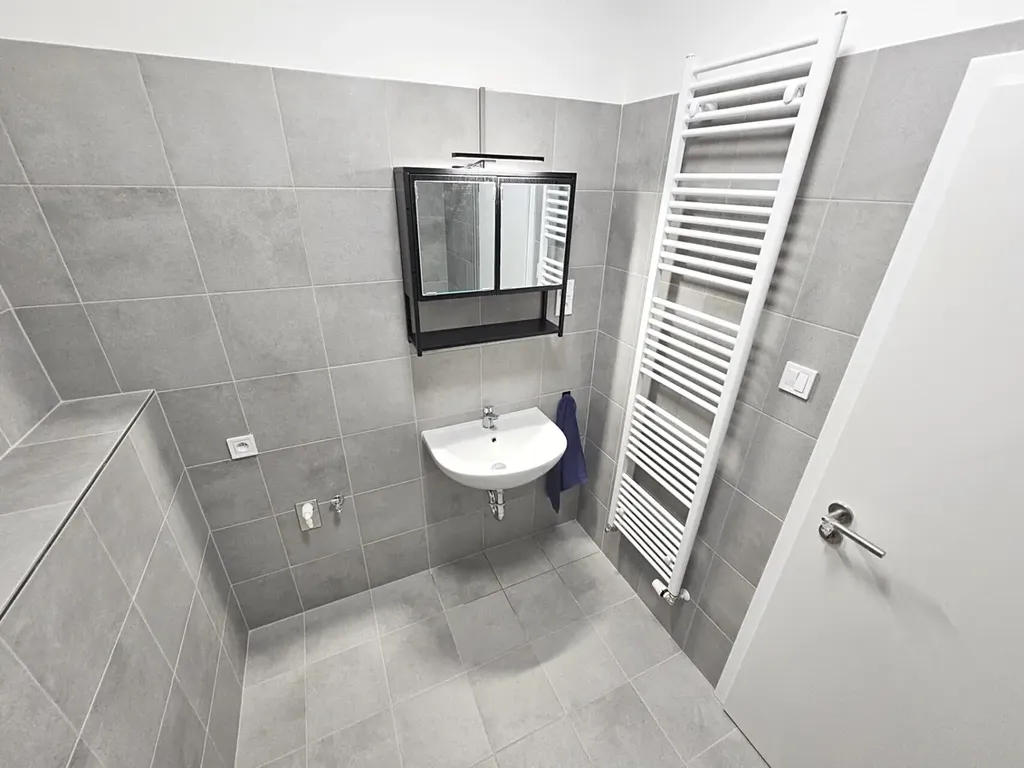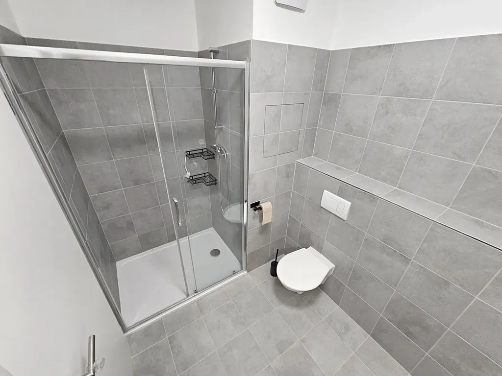 2) koupelna s WC (4,3 m²) a prostorným sprchovým koutem (po dohodě možné zařídit pračku)