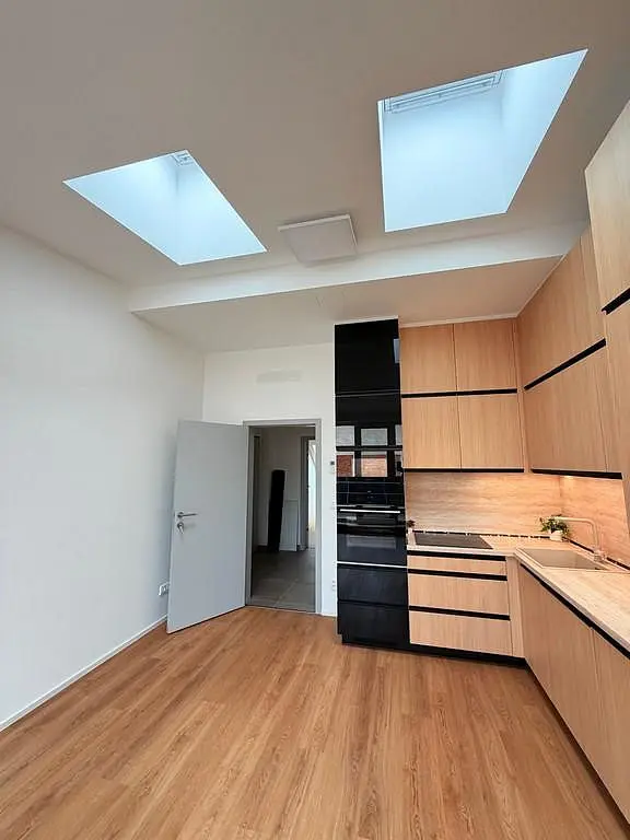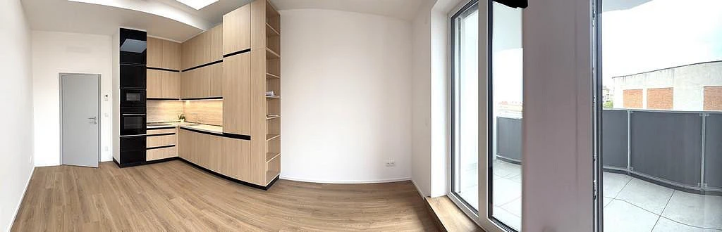 Součástí této místnosti je nová kuchyňská linka vybudovaná na míru, která je vybavena troubou, lednicí s mrazákem, myčkou, digestoří a sporákem. Dominantou této místnosti je balkon o výměře cca 4,63 m², který je orientovaný do klidného vnitrobloku. Součástí této místnosti jsou mimo jiné dvě střešní okna, která jsou elektricky ovladatelná jak otevíráním, tak zastiňováním.