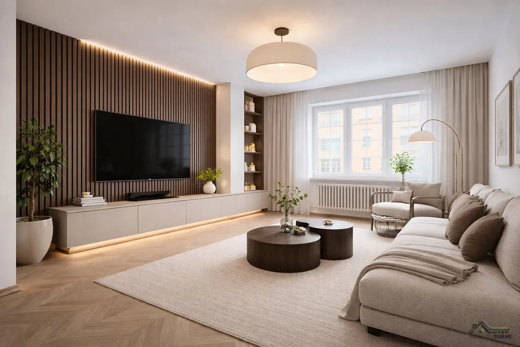 Díky praktickému dispozičnímu řešení nabízí dostatek prostoru pro rodinné bydlení. Součástí prezentace jsou také vizualizace, které ukazují možnou moderní podobu interiéru a pomáhají lépe představit potenciál bytu.