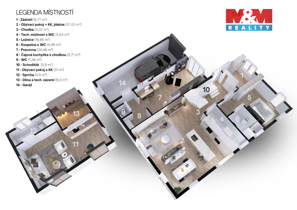 K domu náleží prostorná garáž a 2 venkovní parkovací stání.