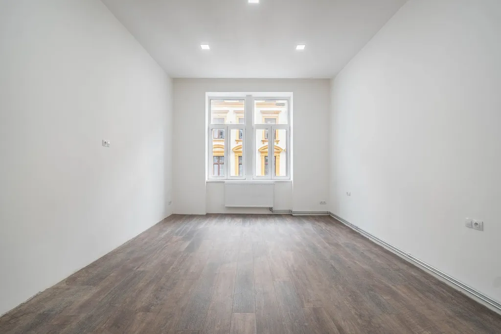 Byt zaujme kombinací moderního standardu, vzdušnosti a výborné lokality. Díky vysokým stropům a velkoformátovým oknům s trojskly působí interiér velmi prostorně a je příjemně prosvětlený po celý den.