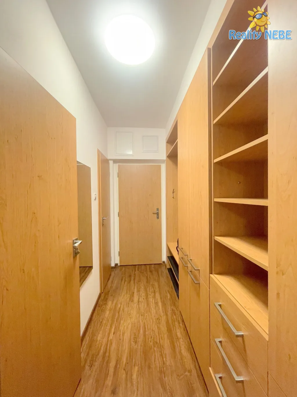 Obývací pokoj s jídelnou, sedačkou, stolky. Moderní kuchyňská linka se všemi kvalitními spotřebiči. Lednice s mrazákem, sklokeramická deska s digestoří, el. trouba, myčka, denní okno. Samostatný pokoj se skříní, ložnice je s balkonem a vestavnou velkou šatnou, manželkou postelí. K dispozici internetový optický kabel. Byt působí velmi útulně a moderně. K bytu náleží i samostatná zavíratelná prostorná garáž + parkovací stání před garáží. Dům je: