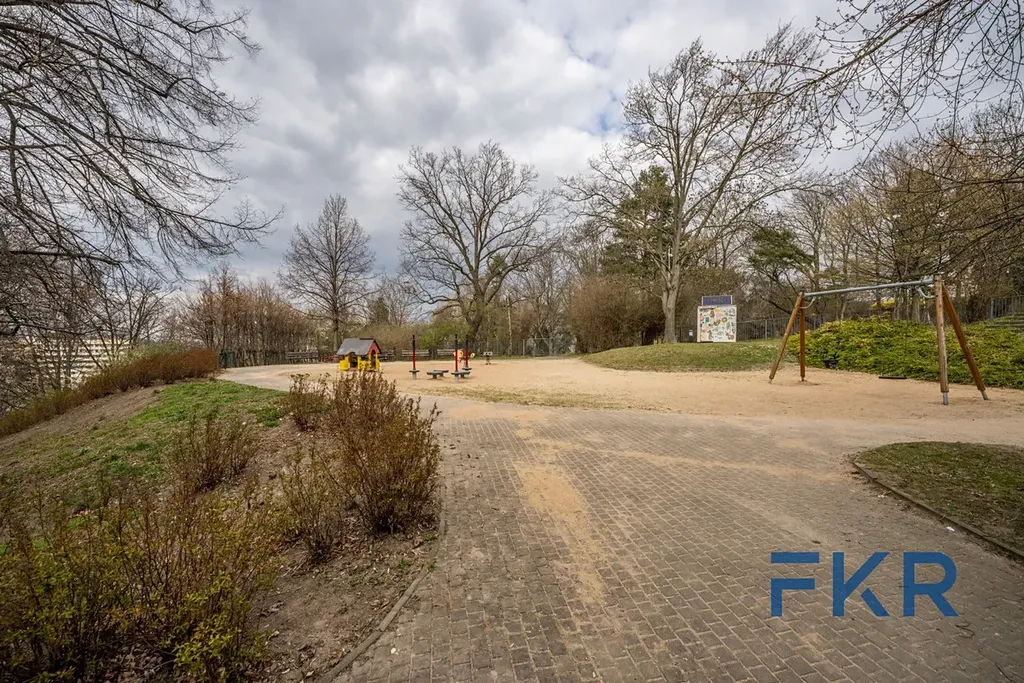 Podlahy jsou v kombinaci dlažby a dřeva, parkování je možné v zakladači v podzemní garáži. Nemovitost se nachází v sousedství historické části Prahy, ale také v prostředí plném zeleně.