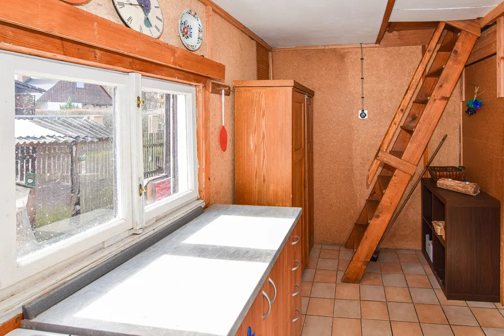 Chata ze 70. let je v dobrém a udržovaném stavu a má vlastní, oplocený pozemek o celkové výměře 341 m².