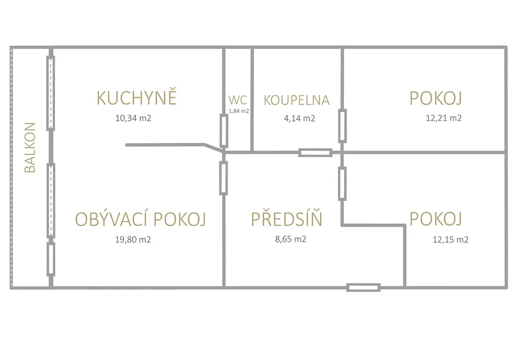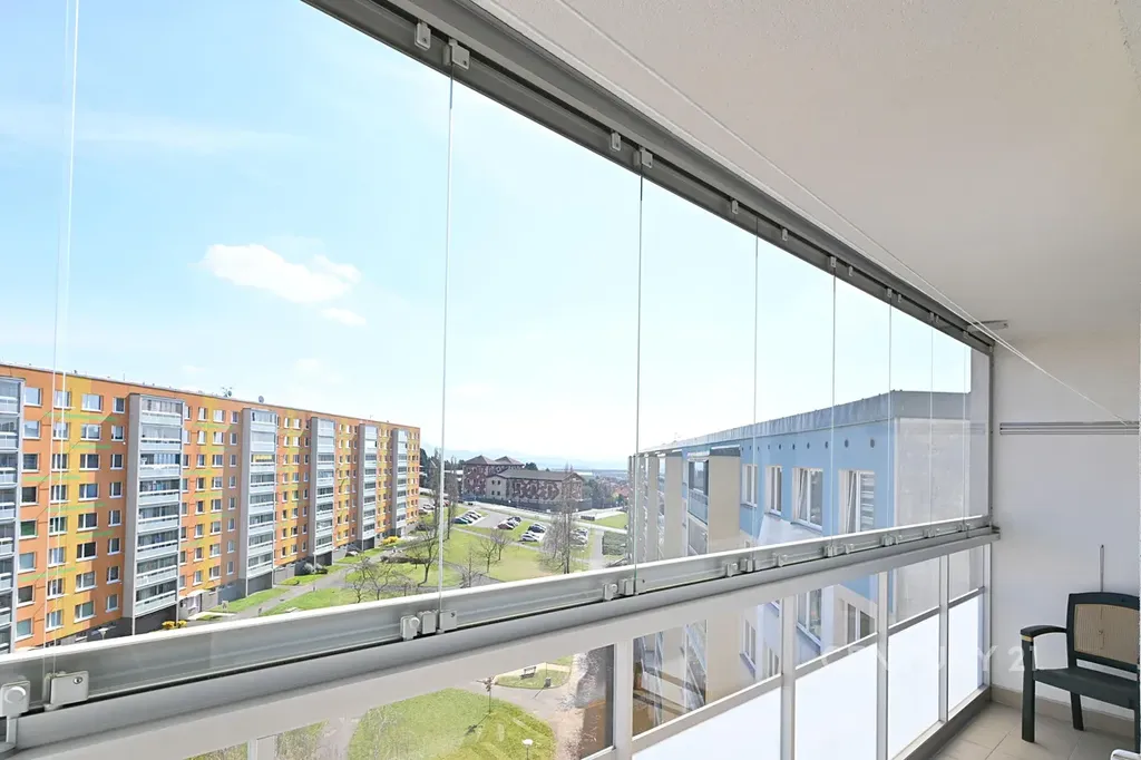 Zasklená lodžie: Velká lodžie s posuvným zasklením, která nabízí skvělý výhled a klidné místo pro relaxaci.
