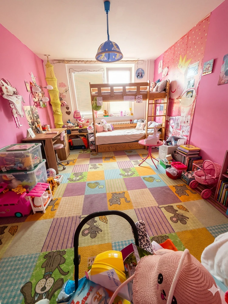 Dispozice 3+1 zahrnuje tři samostatné pokoje, což z bytu činí skvělé řešení pro rodinu, která potřebuje dostatek prostoru. Kuchyně má okno s výhledem do zeleně a je dostatečně prostorná pro rodinné vaření.