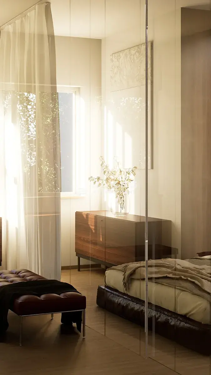 Bytová jednotka bude dokončena ve vysokém standardu, který zahrnuje kvalitní sádrové omítky, ambientní osvětlení a interiérové žaluzie. Koupelna nabídne podlahové vytápění, praktické niky ve sprchovém koutě a sanitu značky Laufen. V rámci klientských standardů je možné zvolit místo standardních příček elegantní skleněné příčky z velkoformátového kaleného skla od společnosti Jakes Glass, které dodají interiéru vzdušnost, více světla a pocit luxusu.