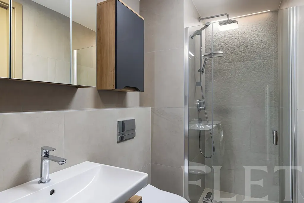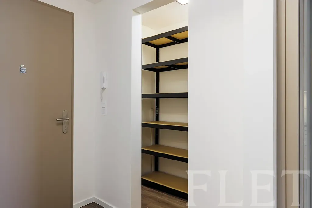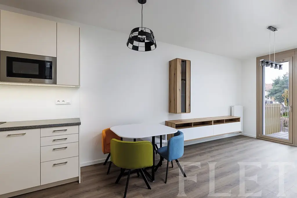 Tento světlý byt o dispozici 2+kk je pro vás již částečně zařízen základním nábytkem a nezbytnými spotřebiči v kuchyňském koutě, který je součástí hlavní místnosti. V té je dostatek místa pro jídelní i obývací část a dostanete se z ní na balkon s příjemným výhledem do klidné ulice a okolní zástavby. Ložnice je již vybavena postelí a na míru vestavěnou skříní. Součástí koupelny se sprchovým koutem je toaleta a také pračka. V předsíni je botník a vstup do kumbálu s policemi, který zajišťuje další úložný prostor.