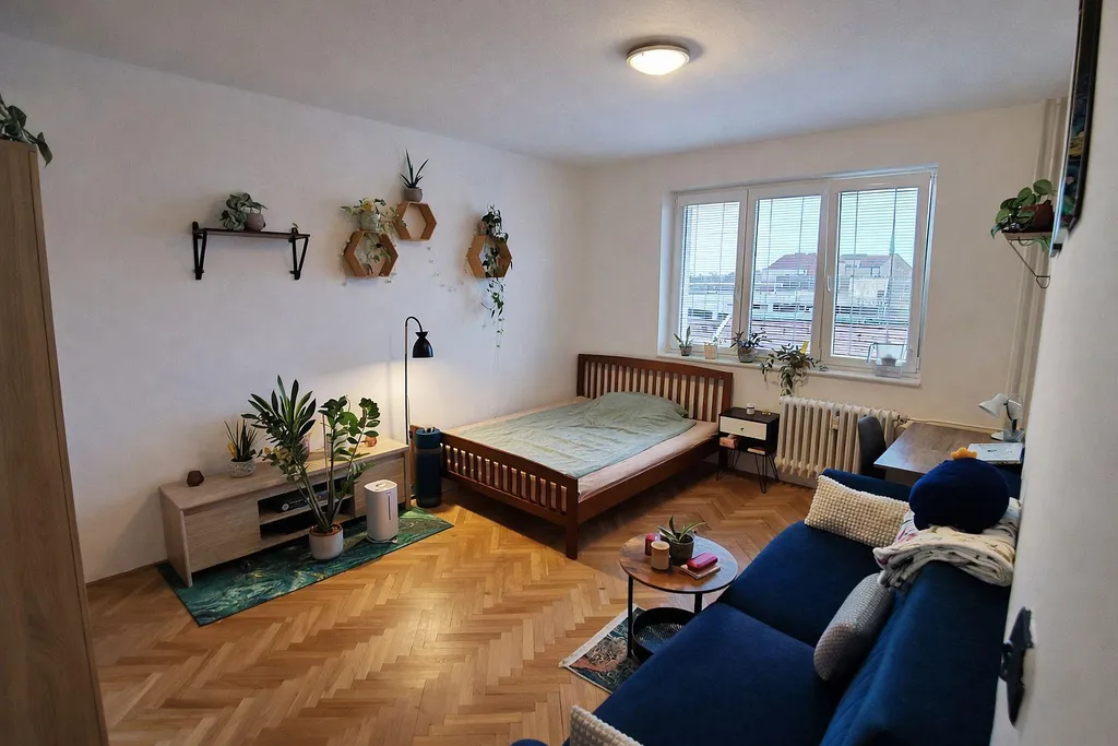 Nabízíme pronájem bytu o dispozici 1+1 a celkové výměře 36,8 m2 včetně sklepa, který se nachází v 5.NP (4. patře) zděného domu s výtahem v žádané části centra Pardubic, a to cca 100m od třídy Míru v ulici Na Hrádku.
