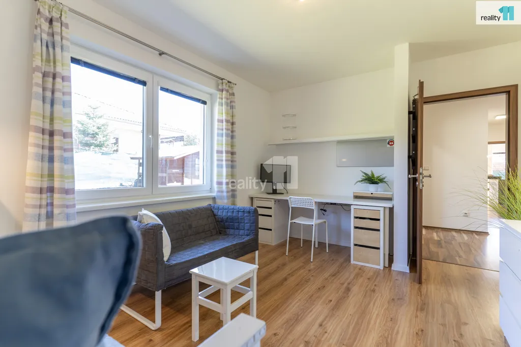 Užitná plocha domu činí přibližně 101 m² a je situován na pozemku o výměře 453 m². Dominantou interiéru je obývací pokoj s kuchyňským koutem a jídelní částí, odkud je zajištěn přímý vstup na terasu a do udržované zahrady. Ta poskytuje dostatek soukromí pro relaxaci, rodinné posezení i volnočasové aktivity. Součástí zahrady je také praktický zahradní domek pro uskladnění nářadí a sezónního vybavení.