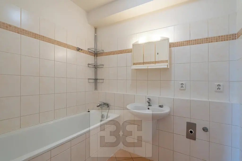 Dispozice bytu tvoří obývací pokoj s kuchyňským koutem, ze kterého je vstup na balkon. Samostatná ložnice nabízí dostatek prostoru pro postel. Koupelna je vybavena vanou a nabízí prostor pro pračku, toaleta je umístěna samostatně.