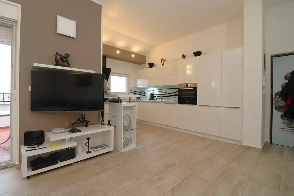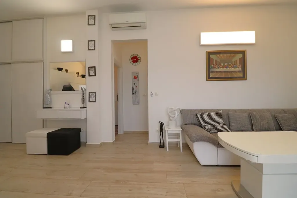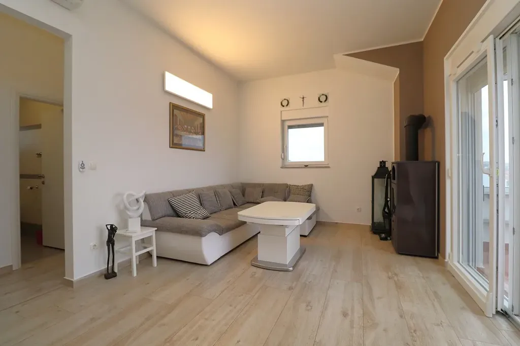 Dovolujeme si Vám nabídnou na prodej plně zařízený a prostorný apartmán se dvěma ložnicemi, velkou terasou a výhledem na moře v městě Vodice v Šibenické oblasti v Chorvatsku.