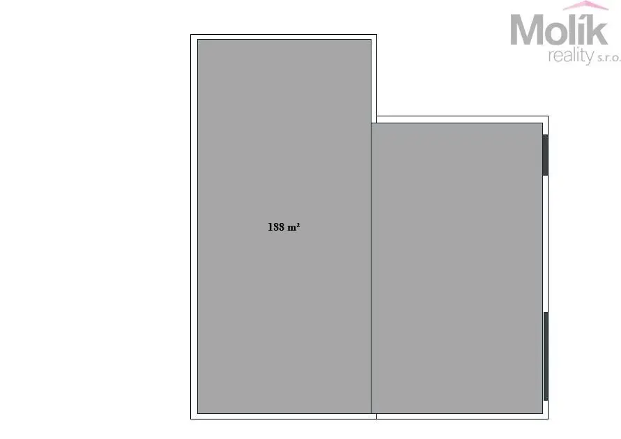 Dispozice: skladové/výrobní prostory 188 m2, místnost 10 m2, umývárna a WC 8 m2.