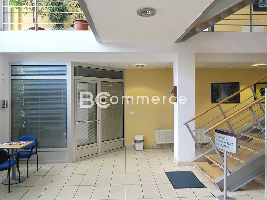 Nabízíme kancelář v přízemí moderní administrativní budovy s recepcí v blízkosti sjezdu z dálnice D1. Jednotka se skládá ze vstupní kanceláře o velikosti 21m² a navazujícího skladu s vestavěnými posuvnými regály o velikosti 31,5m². Objekt má vlastní parkoviště pro nájemce i pro návštěvy a nakládací parkoviště pro přepravní služby, v blízkosti je další veřejné parkoviště zdarma. Nájemci mají k dispozici i recepci a vybavenou jednací místnost.