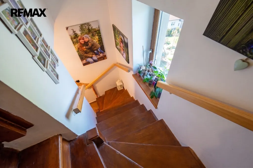 V podkroví se nacházejí dva obytné pokoje a místnost připravená na dokončení koupelny s toaletou. Je nutná oprava střechy.