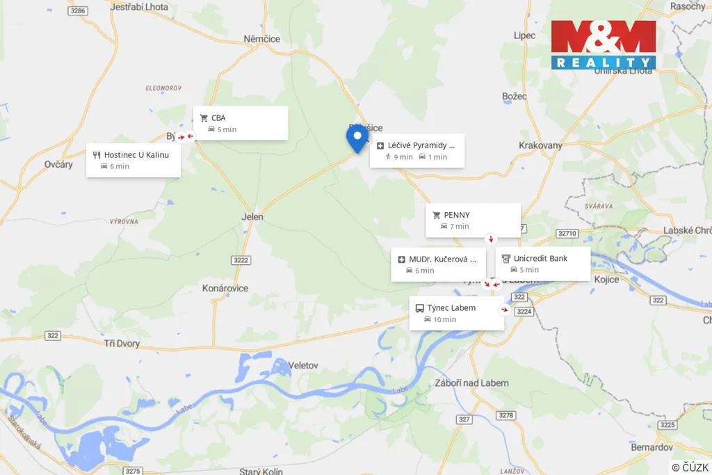 Hlavní město Praha je vzdálena přibližně 60 km, Kolín v krátké dojezdové vzdálenosti. Kombinace dostupnosti a absolutního klidu z něj dělá výjimečnou nabídku.