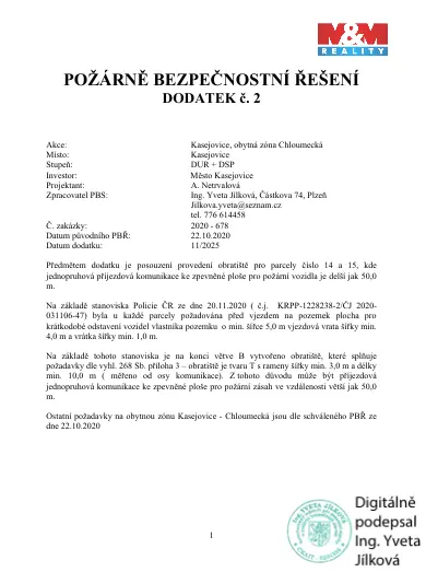 Na hranici pozemku jsou k dispozici veškeré inženýrské sítě včetně optického internetu, což výrazně usnadňuje zahájení stavby.