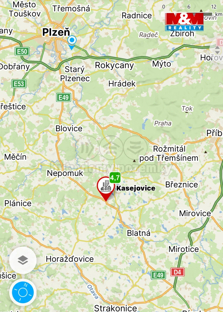 Lokalita nabízí ideální kombinaci klidu, soukromí a dobré dostupnosti – Blatná (12,8 km), Horažďovice (21,1 km), Písek (39 km) a Plzeň (48,5 km).