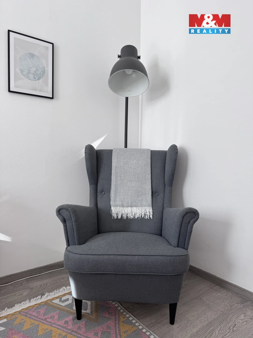 Dominantou bytu je světlý obývací pokoj s kuchyňským koutem, který je vybaven kuchyňskou linkou se spotřebiči a nabízí dostatek prostoru. Z obývací části je vstup na balkon, který poskytuje příjemné místo k odpočinku.