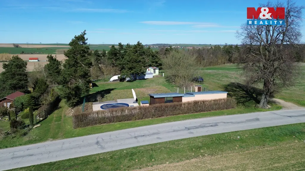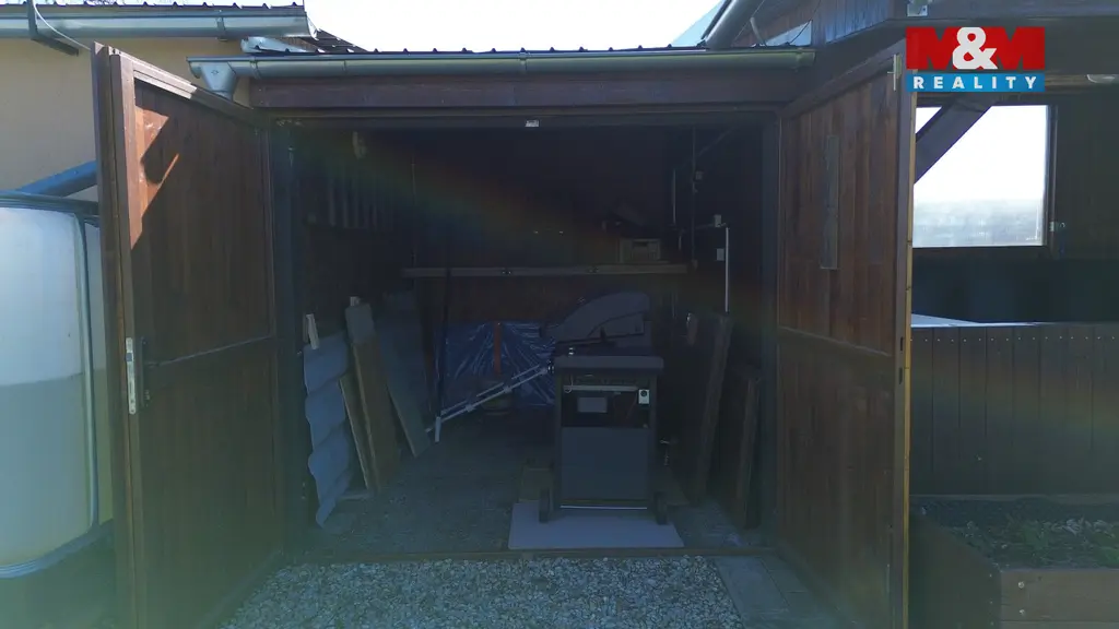 Pergolu s kuchyňským koutkem a s posezením 20 m². Garáž 8,16 m² a zahradní domek 20,06 m² s možností předělat na ložnici. Vrt na vodu hluboký 24 m. Zpevněnou příjezdovou cestu.
