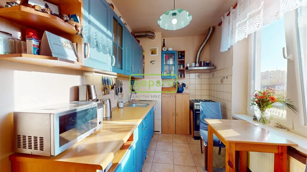 Dispozice bytu je prakticky řešena – obývací pokoj, dětský pokoj, ložnice, kuchyně, koupelna + WC a předsíň. Vytápění i ohřev vody zajišťuje vlastní plynový kotel, což umožňuje efektivní regulaci nákladů na energie.