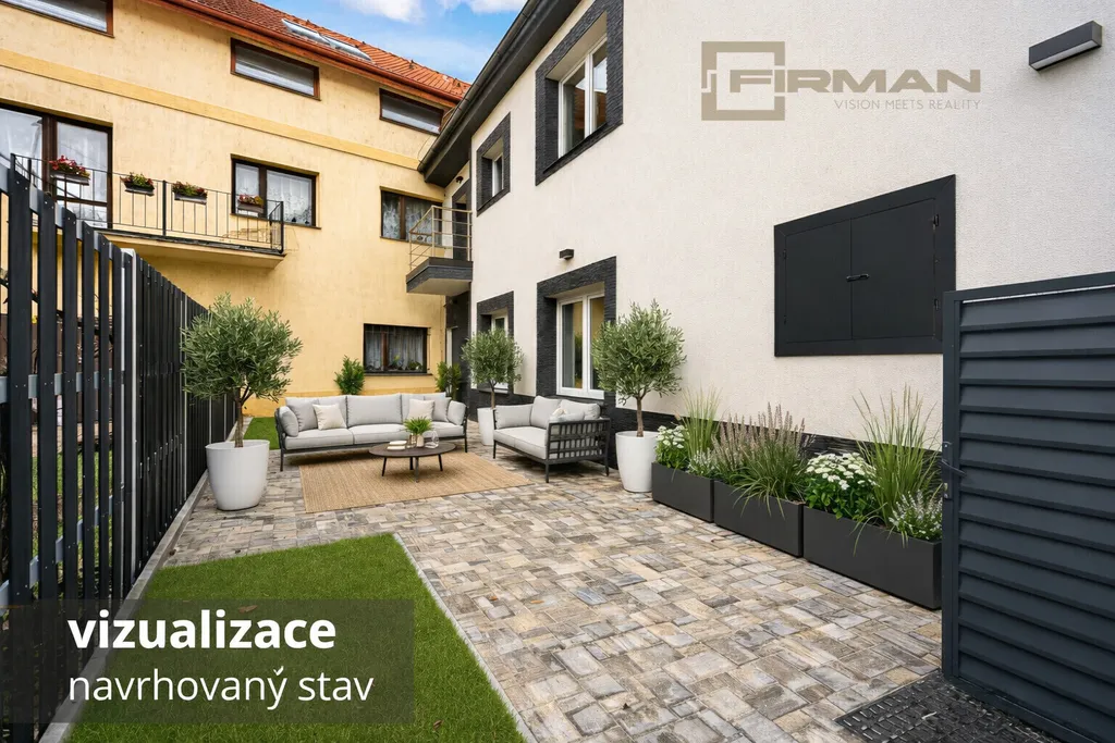 Součástí bytu je vlastní pozemek s možností parkování dvou vozidel ( pro každý byt jedno ), případně lze část prostoru upravit na venkovní posezení – pro odpočinek, rodinné chvíle nebo přátelská setkání. Pro lepší představu se můžete podívat na vloženou vizualizaci této možnosti. Pokud si budete tuto úpravu přát, o vše se postaráme.