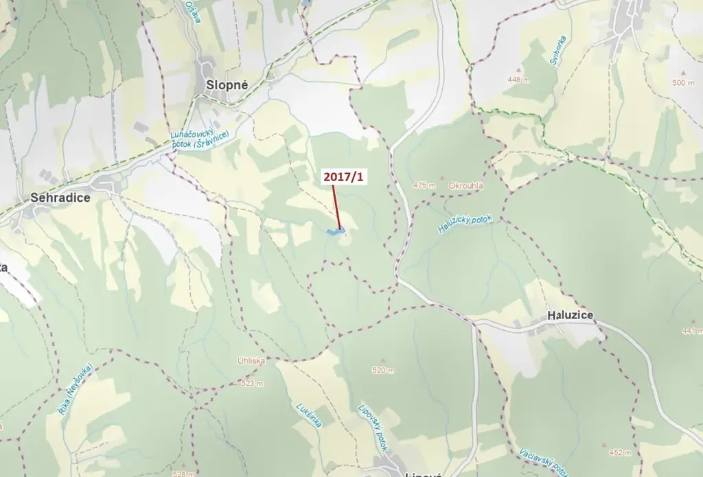 Trvalý travní porost o výměře 7426 m2, parcelní číslo 2017/1, podíl 1/1, katastrální území Slopné, obec Slopné, obec s rozšířenou působností Luhačovice, okres Zlín, Zlínský kraj.