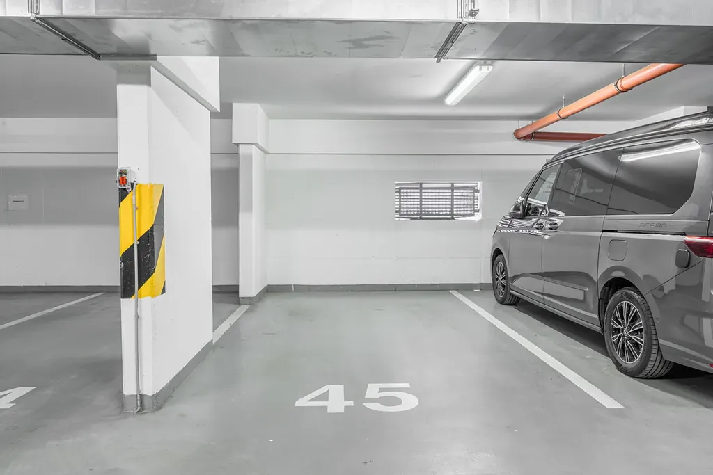 • Parkování: K bytu náleží garážové stání (č. 45) v 1. podzemním podlaží, které je strategicky umístěno přímo u výtahu.