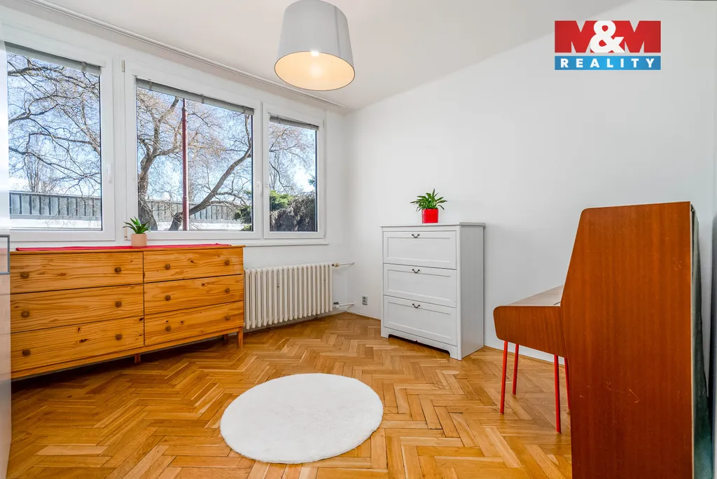 Dispozice: vstupní chodba s vestavěnou skříní, koupelna s vanou, samostatná toaleta, kuchyně, obývací pokoj, ložnice a dětský pokoj. Okna jsou orientována na sever, lodžie na jih, což zajišťuje dostatek denního světla.