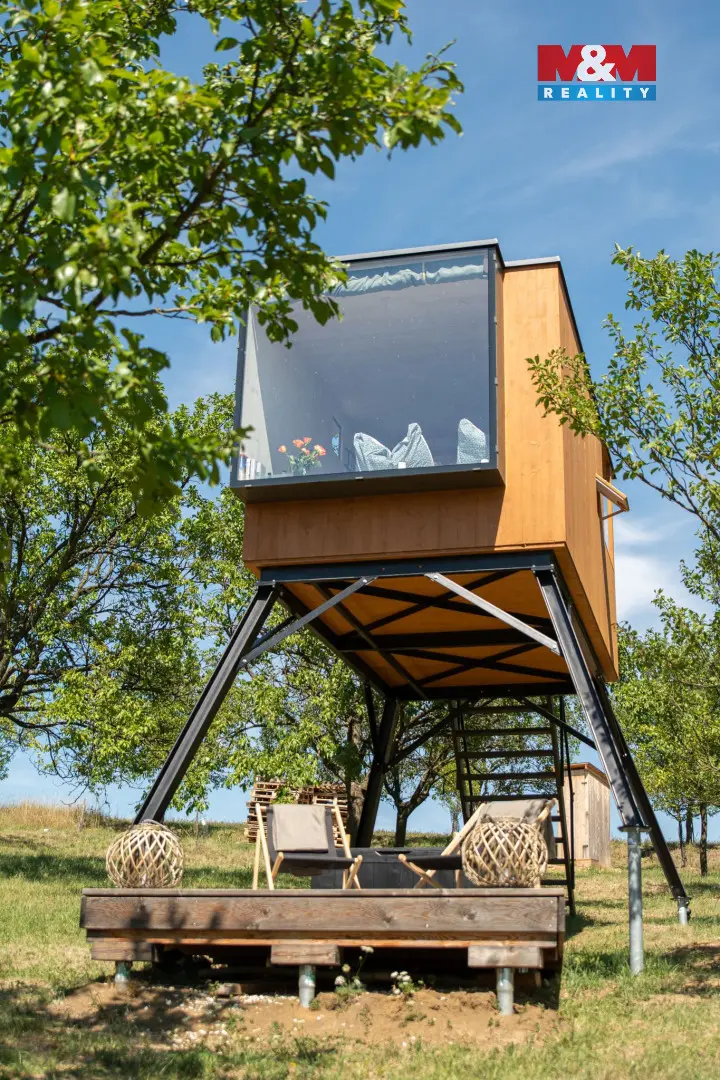 Nabízíme k prodeji originální stavbu ve formě posedu, s atmosférou klidu a soukromí, ideální pro vlastní rekreaci i jako investici do stále oblíbenějšího glampingu.