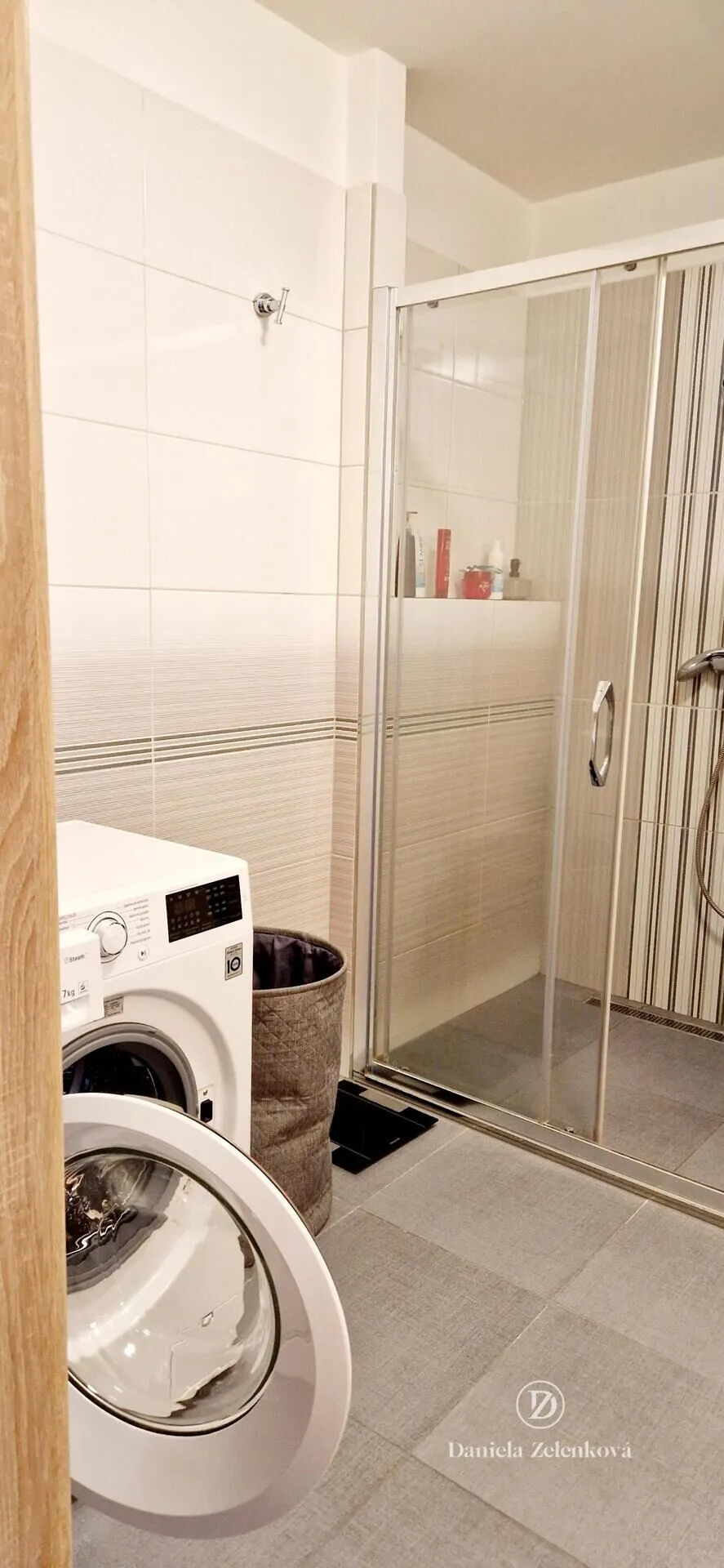 Zařízení: pračka, lednice, myčka, kuchyňská linka se spotřebiči, velká skříň v předsíni