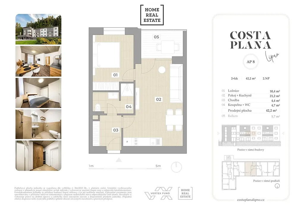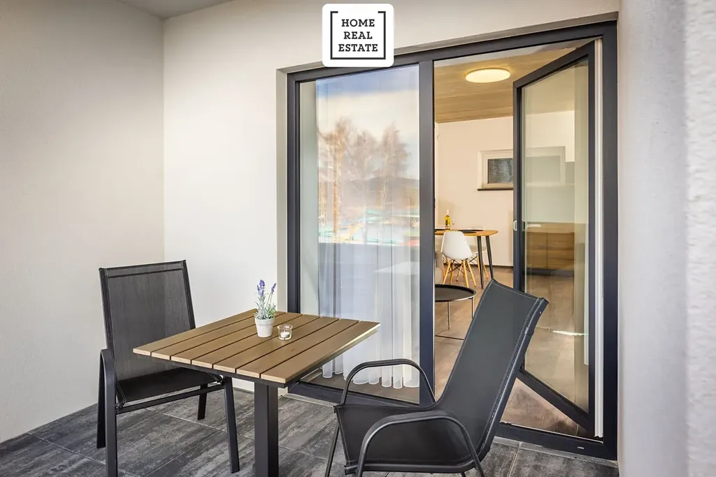 Home Real Estate si dovoluje exkluzivně nabídnout k prodeji plně vybavený designový apartmán o dispozici 2+kk s výhledem na Lipno, o podlahové ploše 42,2 m² a balkonem o velikosti 5,7 m², který se nachází v 2NP projektu Costa Plana Lipno.