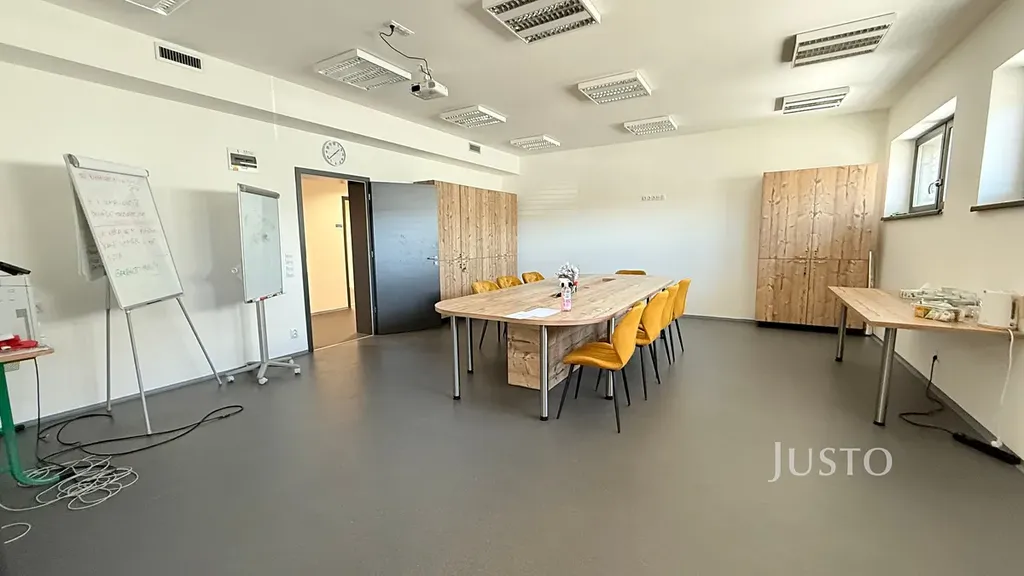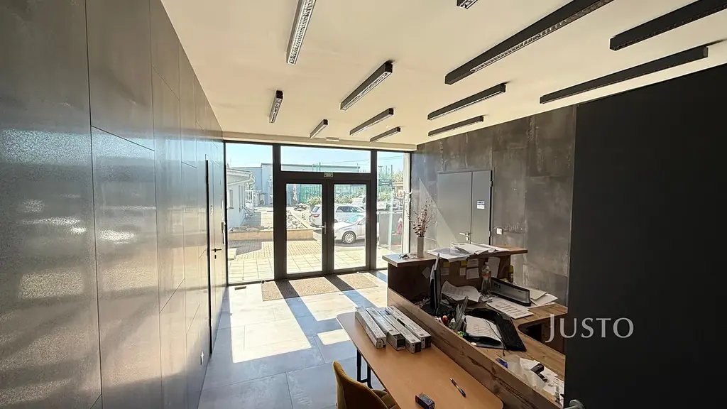 Kanceláře jsou umístěny v 1. nadzemním podlaží a nabízejí flexibilní uspořádání pro zázemí menší i středně velké firmy. Prostory jsou velmi dobře dispozičně řešeny, s dostatkem denního světla a nadstandardními plastohliníkovými okny. Moderní recepce a jednací místnost s designovým nábytkem podtrhují reprezentativní charakter celého objektu. Podlahy i stěny jsou z kvalitních materiálů, které vytvářejí příjemné a profesionální pracovní prostředí. Objekt je bezbariérový, což zajišťuje pohodlný přístup pro všechny zaměstnance i návštěvy.