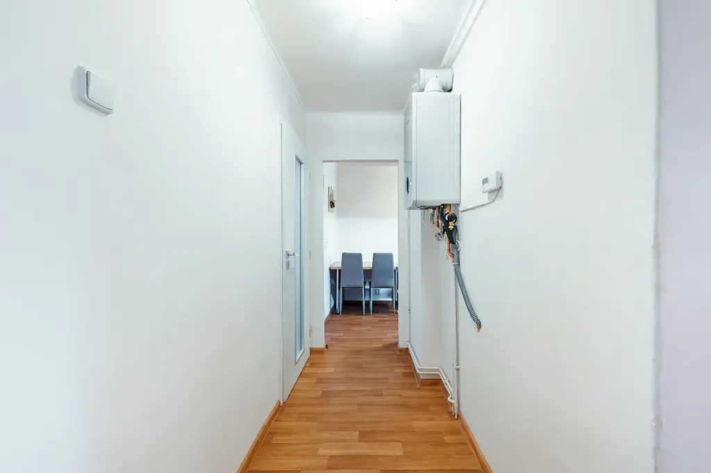 Na podlaze podlahové PVC (chodba, kuchyň), plovoucí podlaha (pokoje) a dlažba (koupelna a WC). Okna plastová, žaluzie, osvětlení ve všech pokojích. Vytápění a ohřev vody – samostatný plynový kotel, samostatné měřiče energií. K bytu patří společný balkon na chodbě a velký sklep 16 m2. Přípojka na internet, pevná linka. Ve vnitrobloku za domem k dispozici dvůr se zahradou. Byt se pronajímá se částečně zařízený. Parkování na ulici před domem, nebo na parkovišti vedle domu. Orientace pokojů na jih (do ulice Za Poštou), kuchyň na sever (do vnitro bloku).