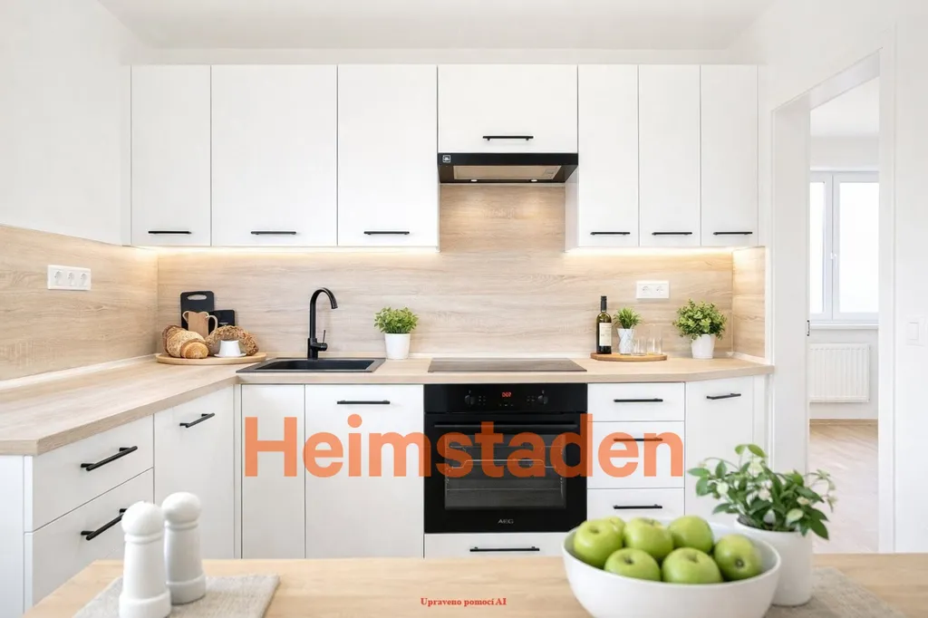 Interiér působí čistě a moderně, v pokojích najdete plovoucí podlahy, které podtrhují útulnou atmosféru. Srdcem bytu je nová rohová kuchyňská linka s vestavnými spotřebiči, která nabízí dostatek pracovního i úložného prostoru pro pohodlné vaření.