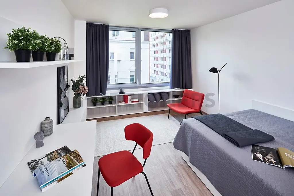 Nabízíme k pronájmu kompletně zařízené studio 1+kk v Harfa Design Residence.