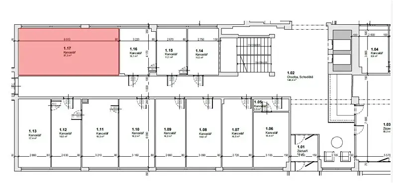 Prostor se nachází v 1. nadzemním podlaží Budovy 1 a má samostatný vstup z hlavní chodby. Je vybaven umyvadlem a díky své dispozici je vhodný jako sklad, výdejna e-shopu nebo pro menší výrobu.