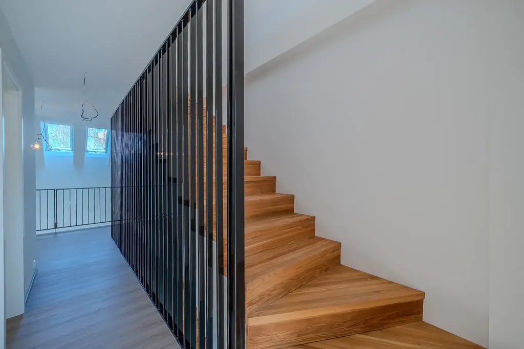 Samozřejmostí je vysoký standard provedení – kvalitní vinylové podlahy s akustickou podložkou, francouzská okna s izolačním trojsklem, moderní koupelny se sanitou Grohe a velkoformátové obklady.