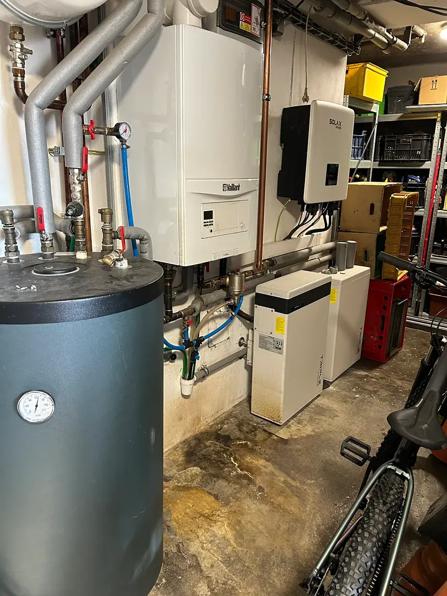 Tento rodinný dům je vybaven fotovoltaickými panely, které přispívají k vyšší energetické úspornosti a šetří náklady na energie. Vytápění je ústřední a je plynové, je zde také kotel na tuhá paliva a v prvnim patře krb. Tak je možné si zvolit zdroj tepla.
