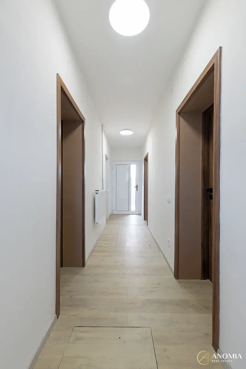 Dům je cihlový, nová jsou okna, fasáda, střecha, rozvody i veškeré interiérové prvky. Přízemí nabízí čtyři samostatné pokoje s dispozičně připraveným prostorem pro kuchyň, koupelnu s vanou a WC. Vytápění zajišťuje plynový kotel s radiátory, soukromí pak elektrické venkovní žaluzie.
