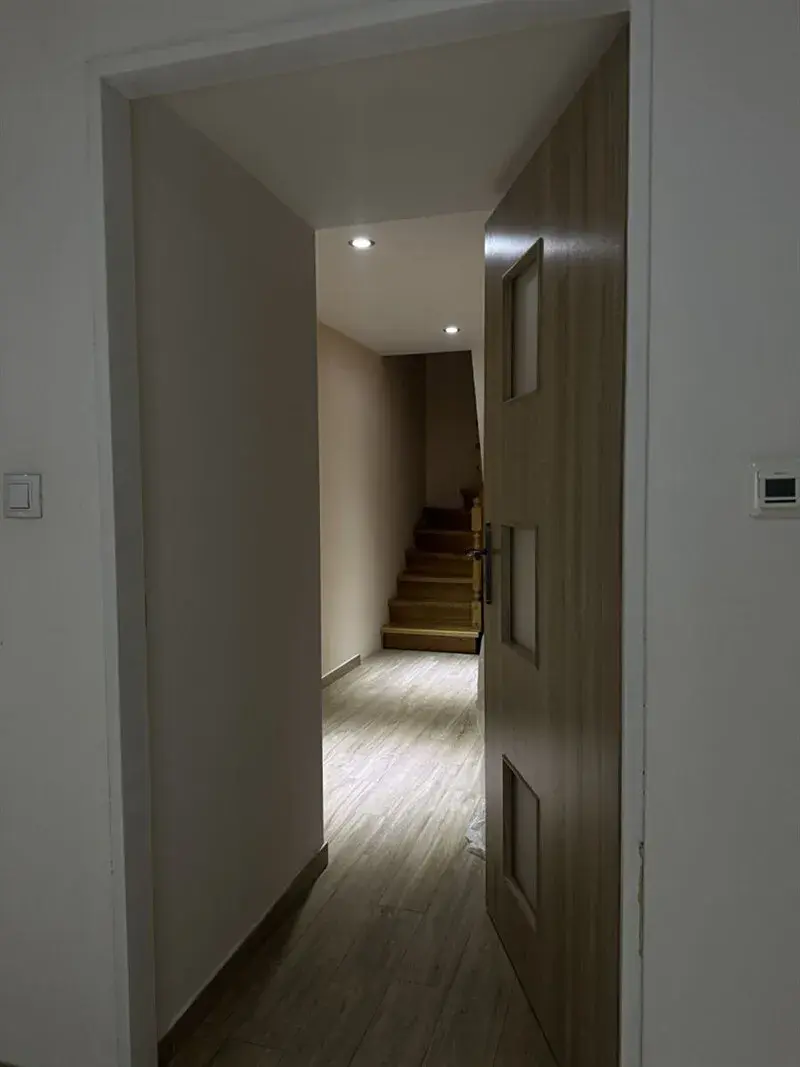 Elegantní kuchyňská linka je vybavena vestavnými spotřebiči a nabízí dostatek pracovní plochy i úložných prostor. Celý prostor působí vzdušně a reprezentativně, podtržený pravými dřevěnými parketami a podlahovým vytápěním, které zajišťuje maximální komfort bydlení.