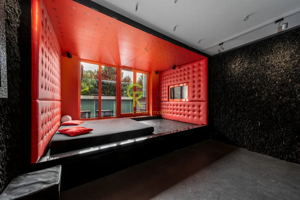 Především jeho originální a nekonvenční interiér, který byl navržen s důrazem na funkčnost a kreativní využití prostoru. Nechybí zde: